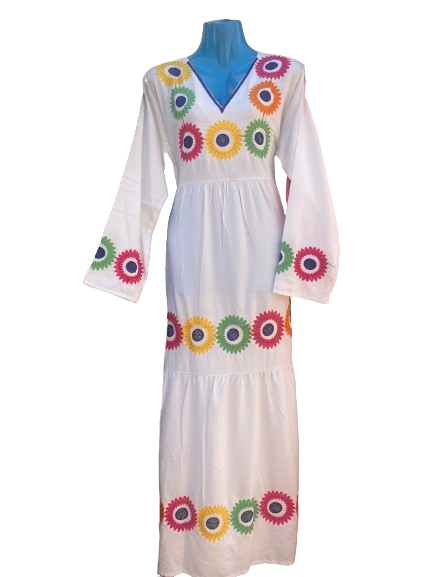 Beautiful and colorful Nubian embroidered dress. Made in Egypt out of "Egyptian Cotton."